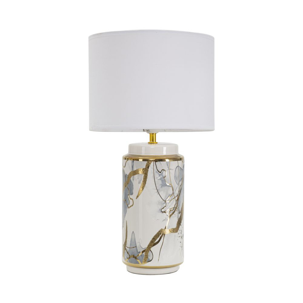Lampada da tavolo in ceramica con paralume in tessuto bianco. La particolare decorazione floreale della base la rende perfetta per ogni ambiente.