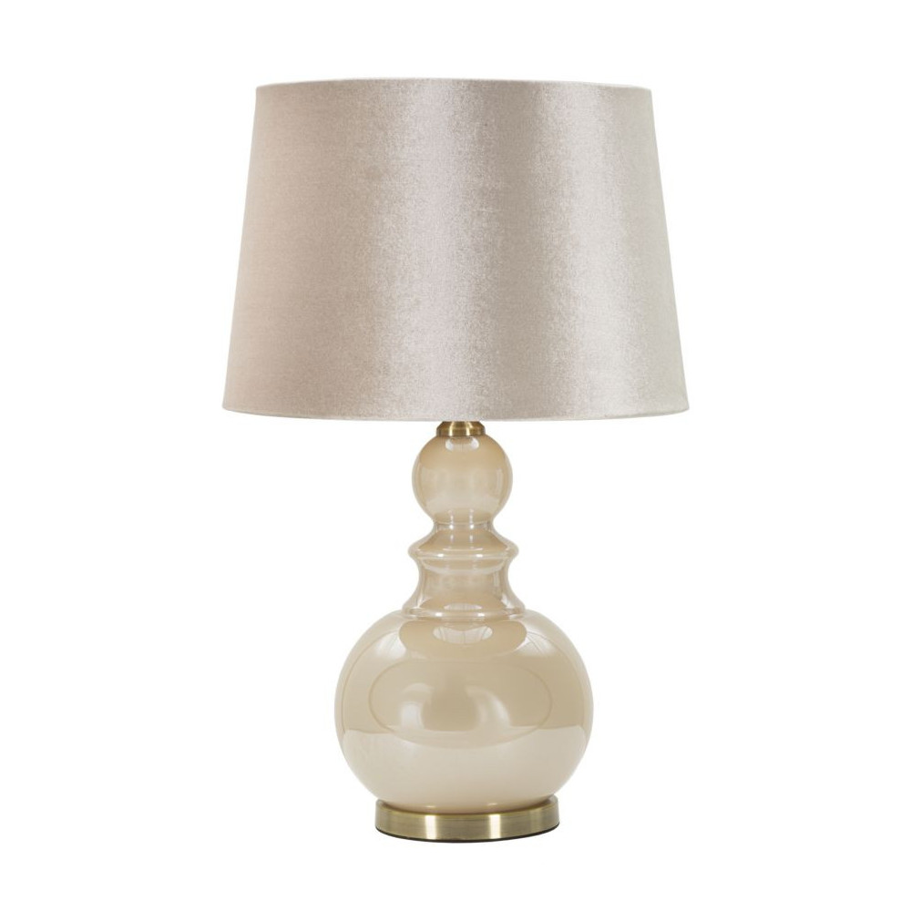Lampada da tavolo con base di vetro crema e paralume in velluto crema perfetta per creare un'atmosfera accogliente e confortevole in ogni ambiente.