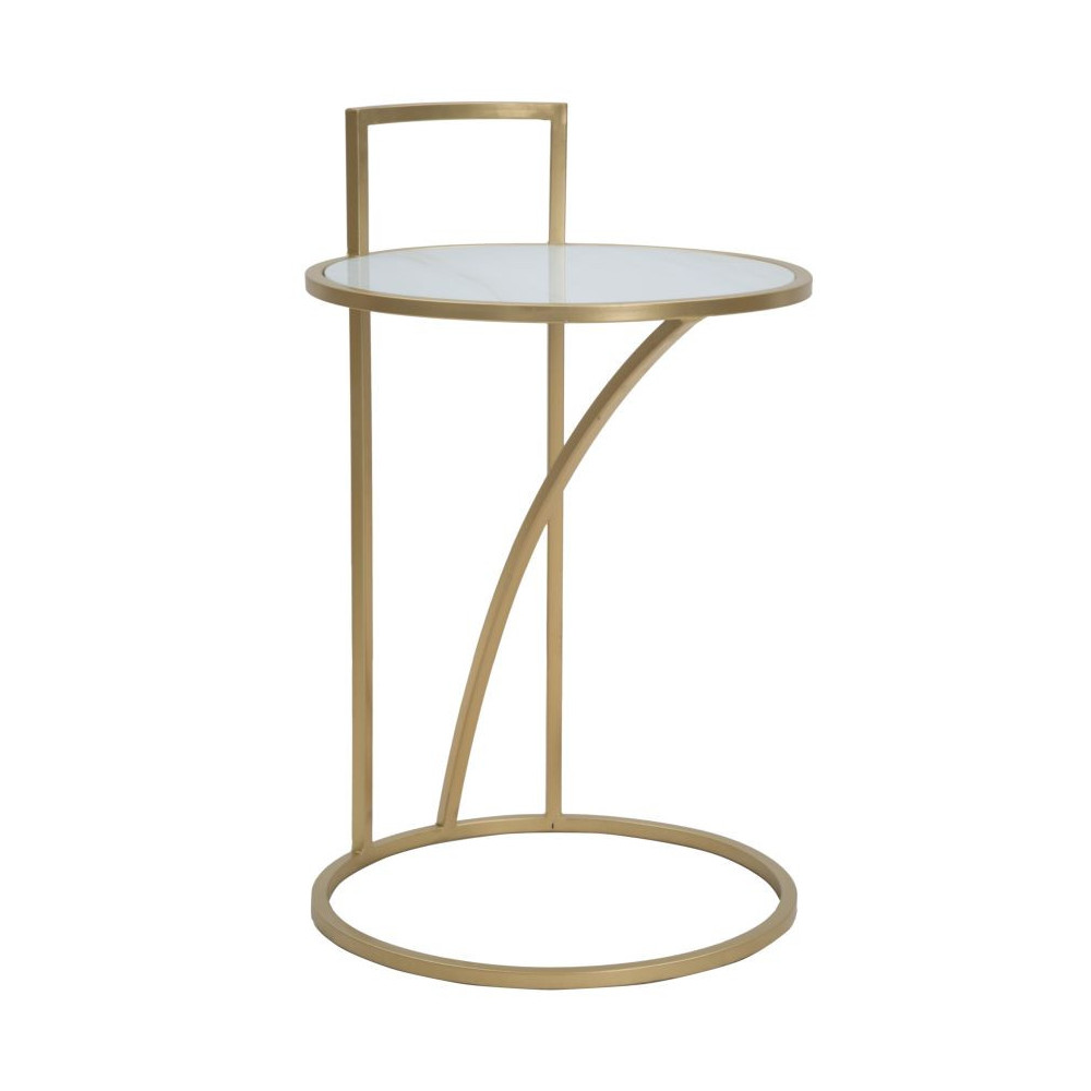 Tavolinetto rotondo con struttura in metallo dorato e piano in marmo. Il design geometrico semplice ma deciso dona un tocco di particolarità ad ogni ambiente.