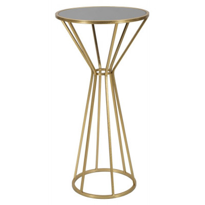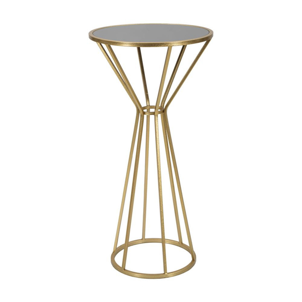 Tavolinetto rotondo in metallo dorato dalle linee semplici ed essenziali con piano in vetro a specchio.