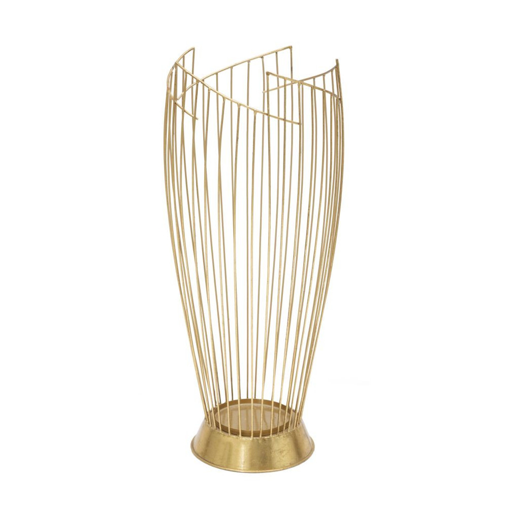 Portaombrelli in metallo dorato dalle linee regolari e geometriche. Lo stile glam rende ogni complemento d'arredo particolare e dona eleganza e luminosità ad ogni stanza.