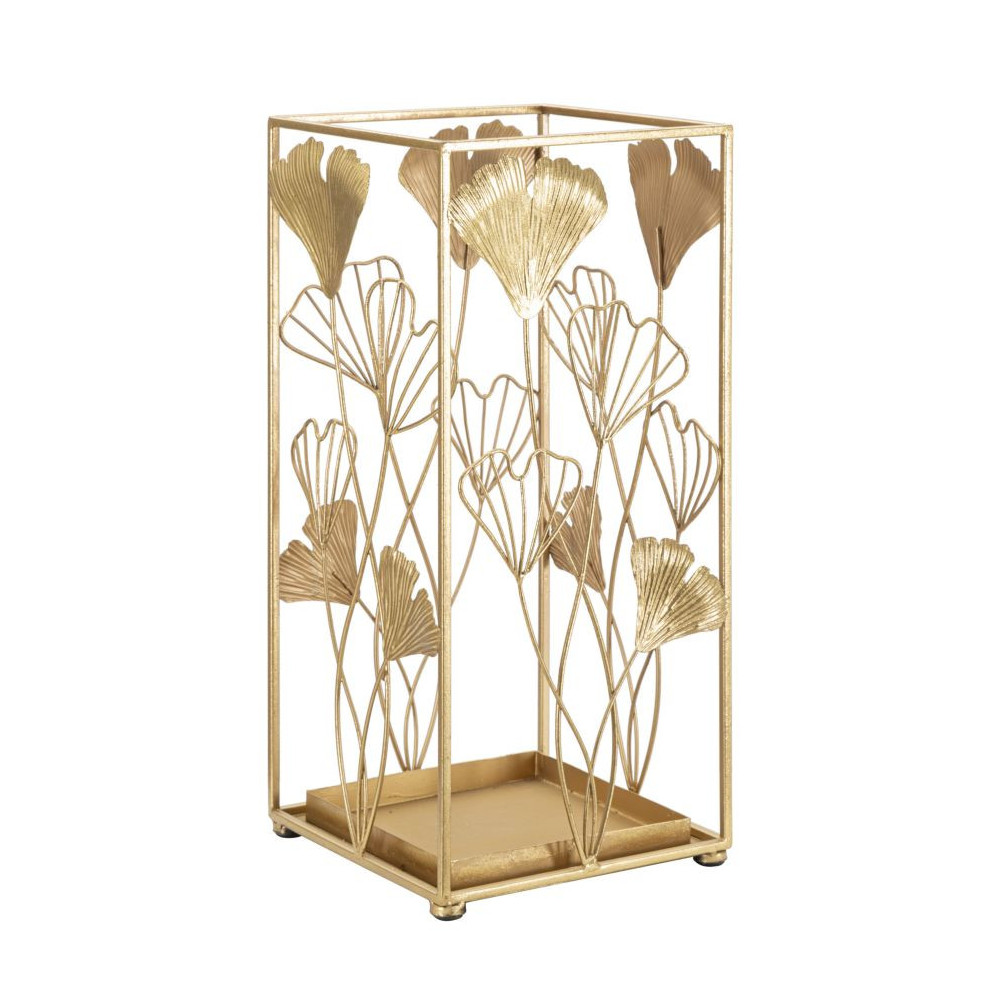 Elegante portaombrelli quadrato in metallo dorato con delicate decorazioni floreali. Un tocco di classe e ricercatezza all'ingresso di casa tua.
