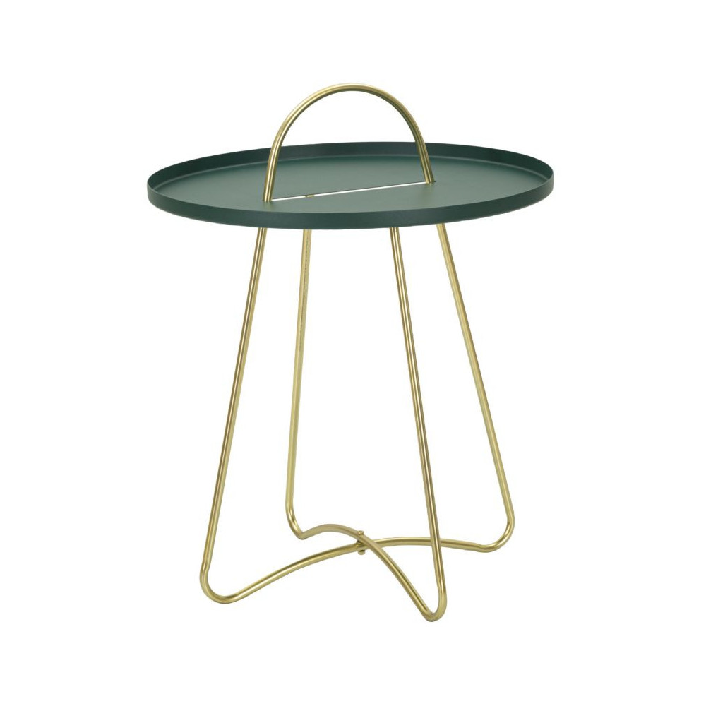 Elegante tavolino verde satinato con gambe dorate, perfetto per aggiungere un tocco di raffinatezza e modernità a qualsiasi ambiente.