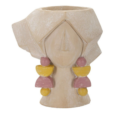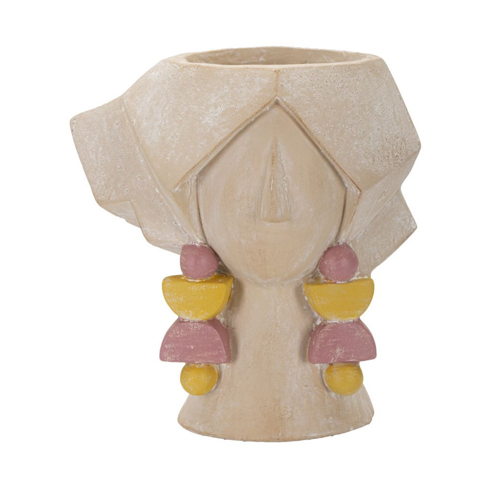 Vaso raffigurante un volto di donna dal design che richiama il cubismo con eleganti orecchini colorati.