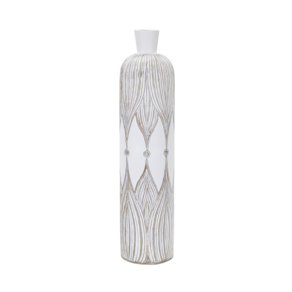 Vaso con eleganti decorazioni intagliate morbide e sinuose.