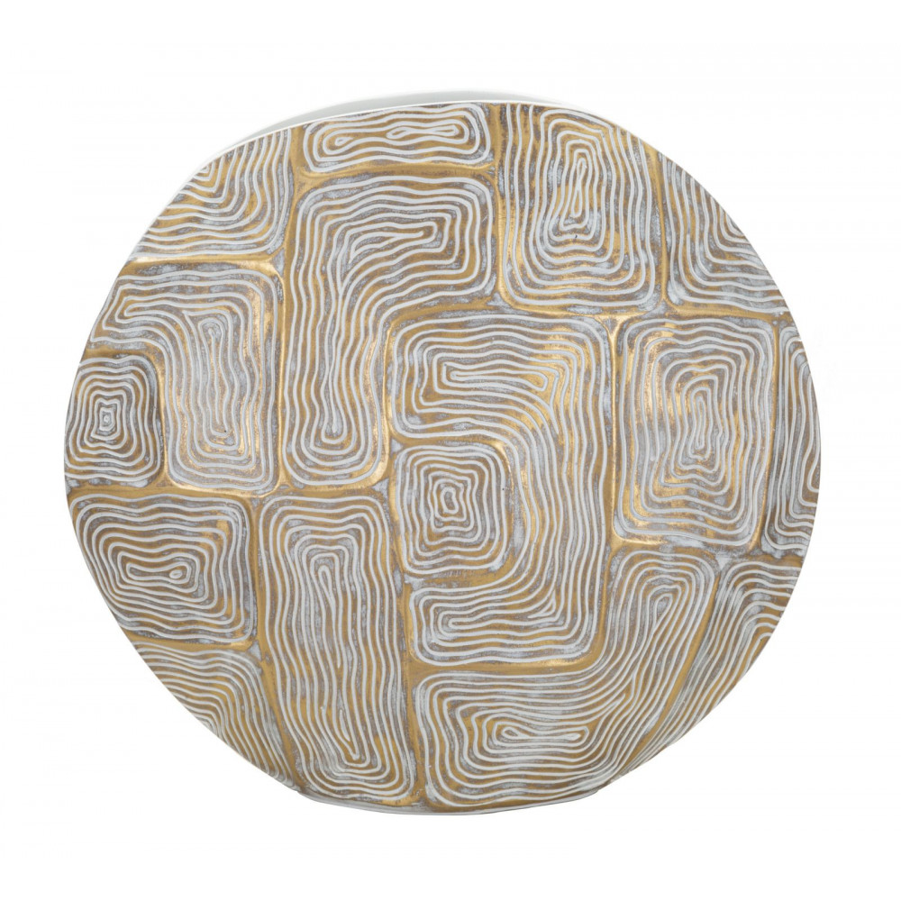 Vaso in resina elegantemente decorato da forme geometriche dalle linee morbide e arrotondate.