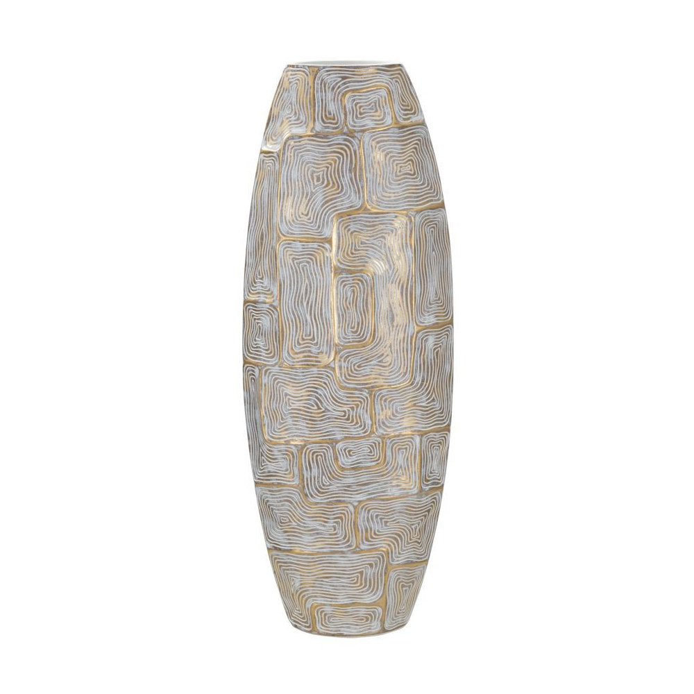 Vaso in resina elegantemente decorato da forme geometriche dalle linee morbide e arrotondate.