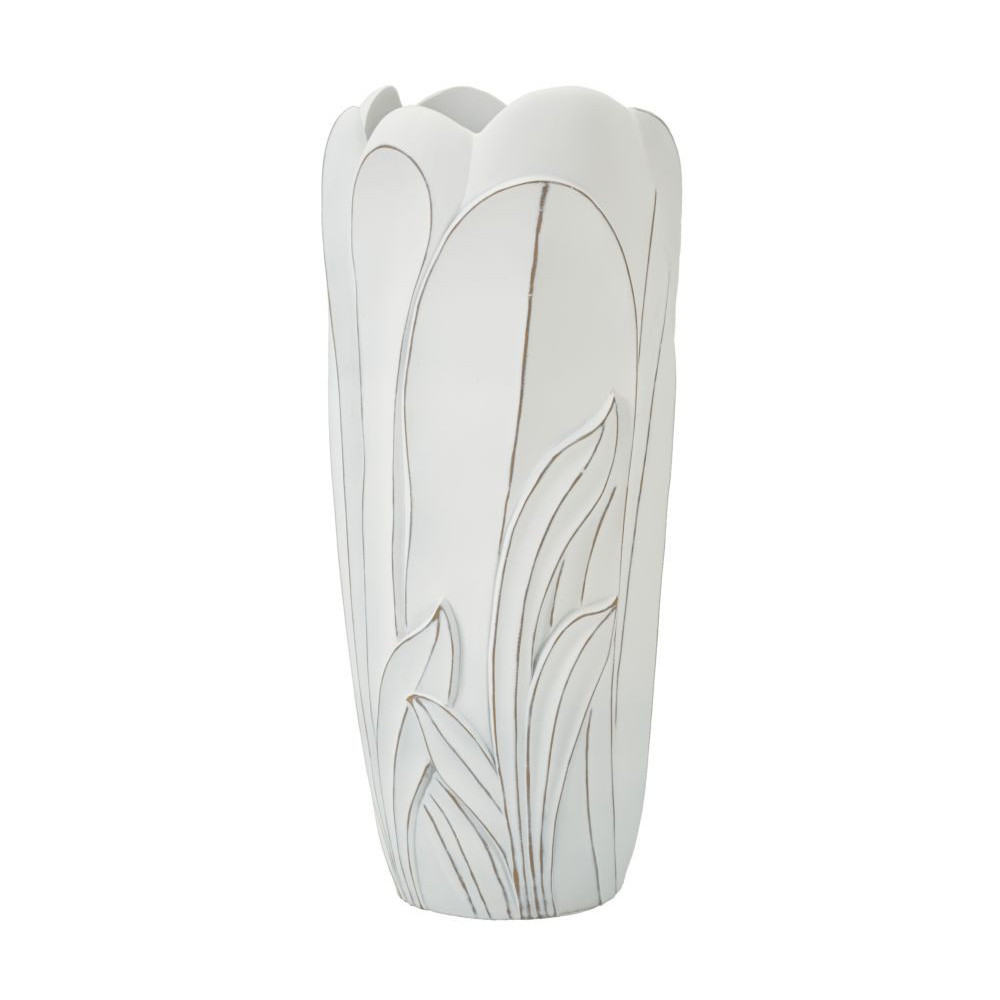 Vaso in ceramica dal design morbido e sinuoso con eleganti decorazioni in rilievo.
