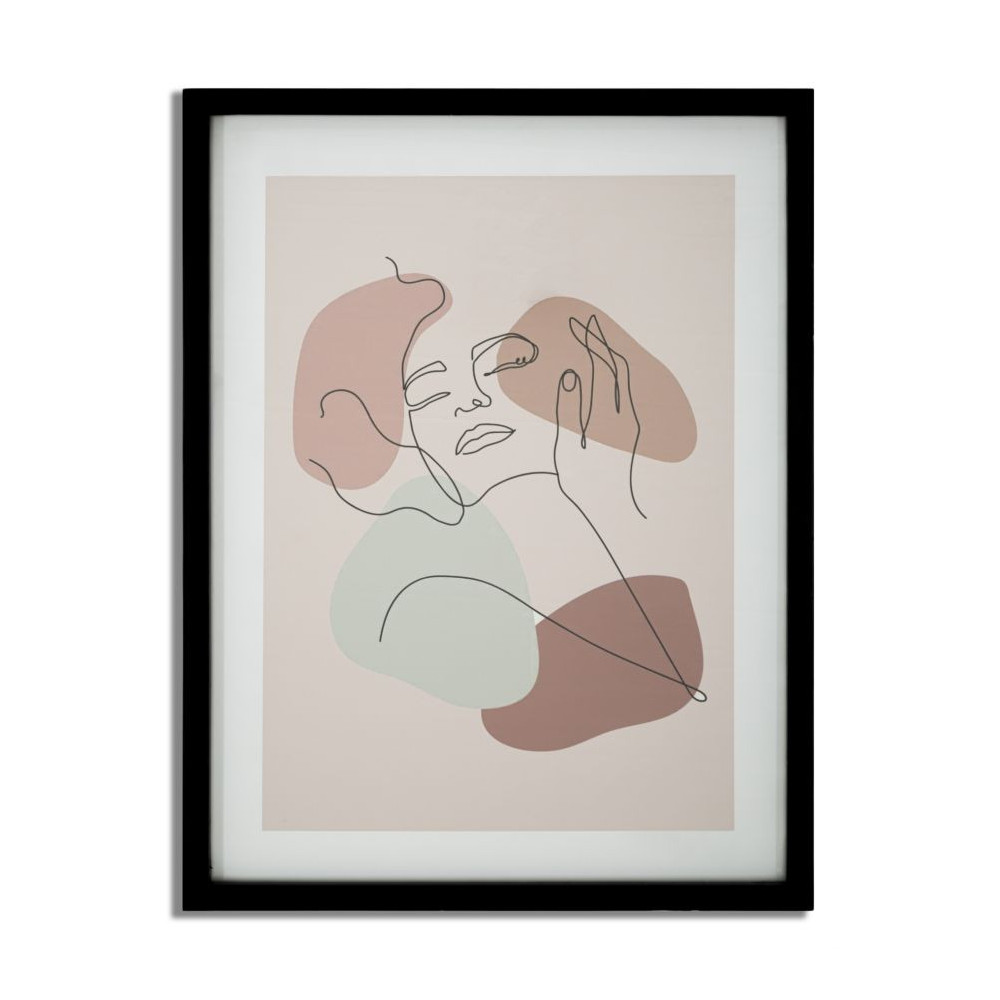 Stampa con cornice dai colori soffusi raffigurante un volto di donna dai toni minimali