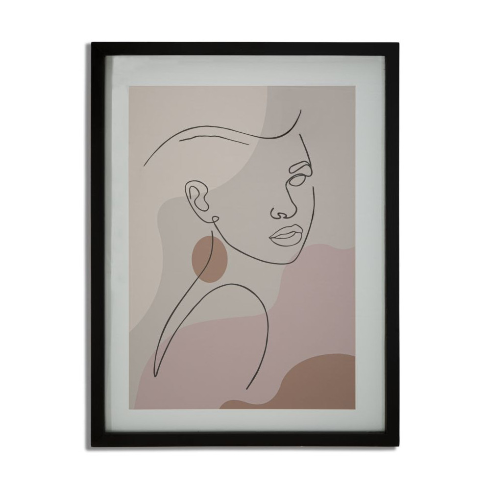 Stampa con cornice dai colori soffusi raffigurante un volto di donna dai toni minimali