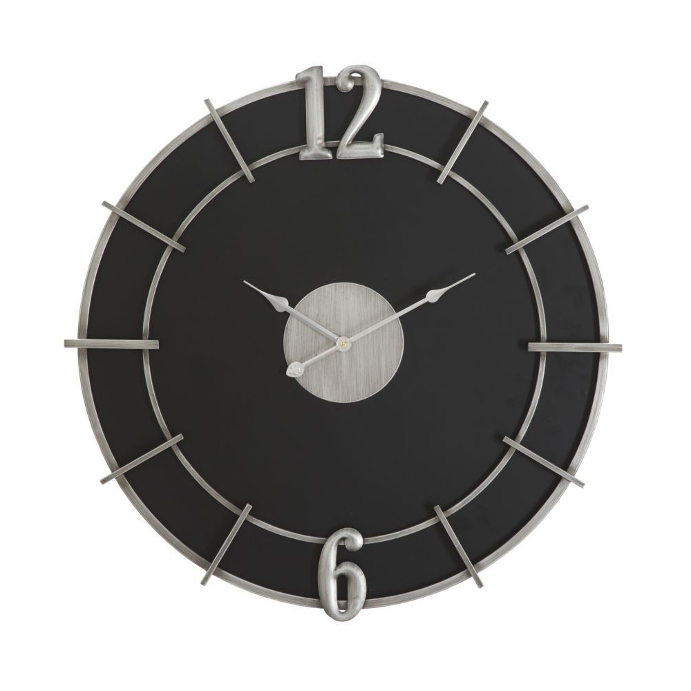 Orologio da parete in legno e metallo dalle linee glam e minimaliste. Il nero e l'acciaio si sposano alla perfezione con ogni tipologia di arredamento. La massima cura dei dettagli rende ogni orologio un pezzo unico. Tieni il tempo con stile!