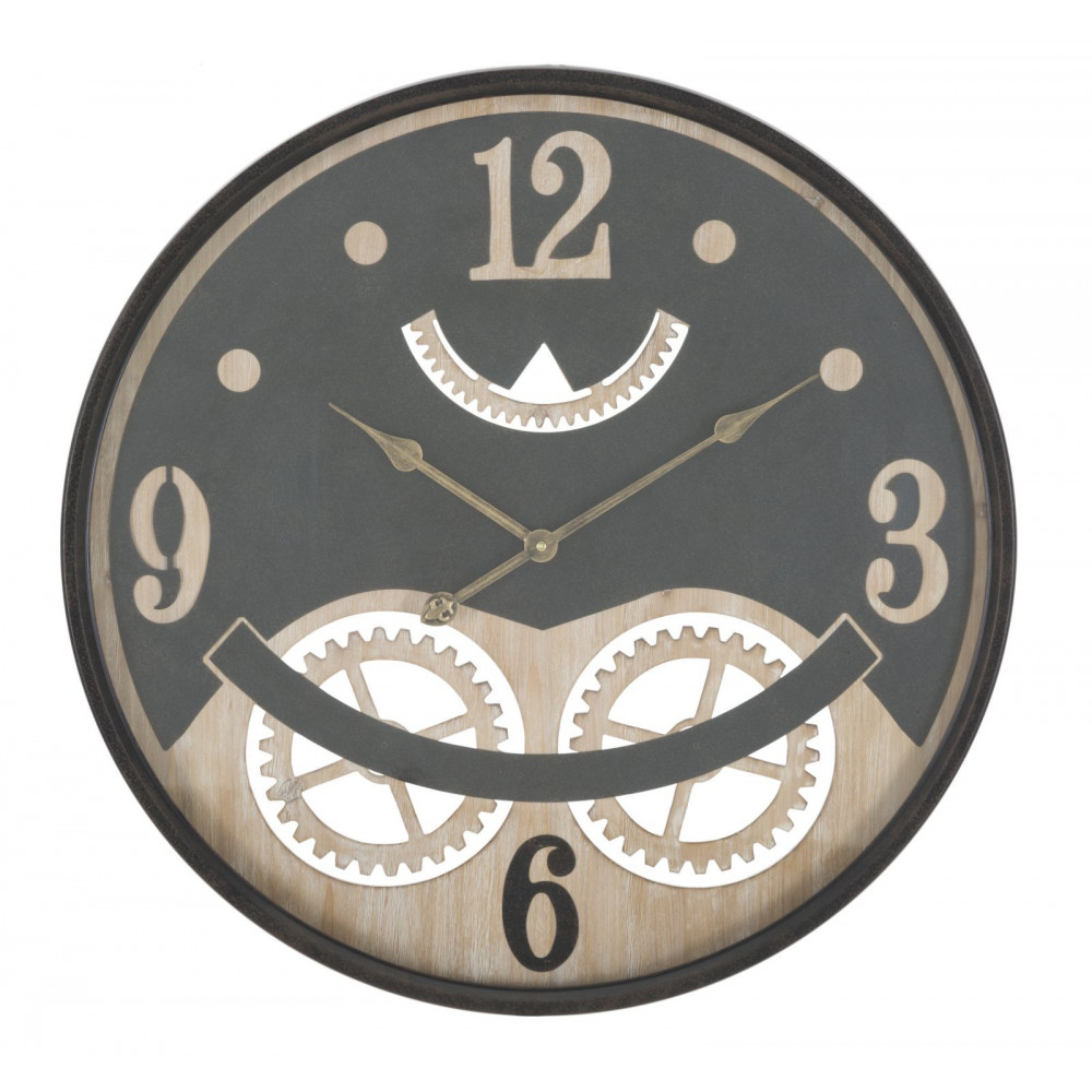 Elegante orologio rotondo da parete con decorazioni che richiamano gli ingranaggi, un tocco unico per ogni ambiente.