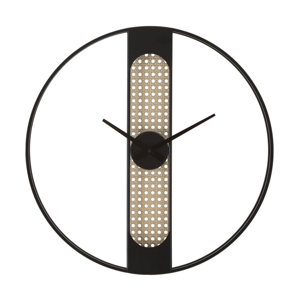 Orologio rotondo da parete dalle linee semplici impreziosito da un decoro centrale con una lavorazione che richiama la paglia di Vienna