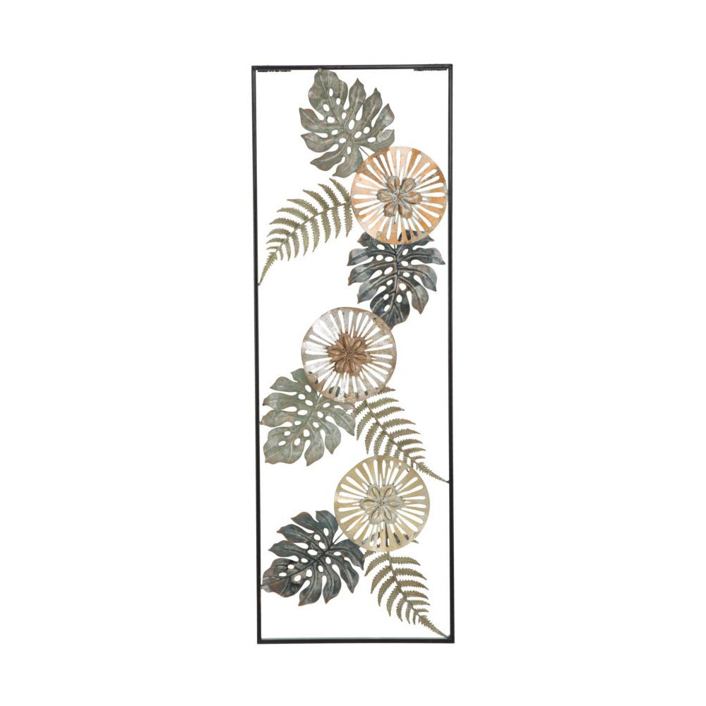 Pannello rettangolare con foglie in metallo. I pannelli 3D sono il nuovo trend per decorare le pareti. Il metallo laccato si declina in forme geometriche, vegetali o animali che conferiscono un'allure glamour e sorpendente ad ogni ambiente