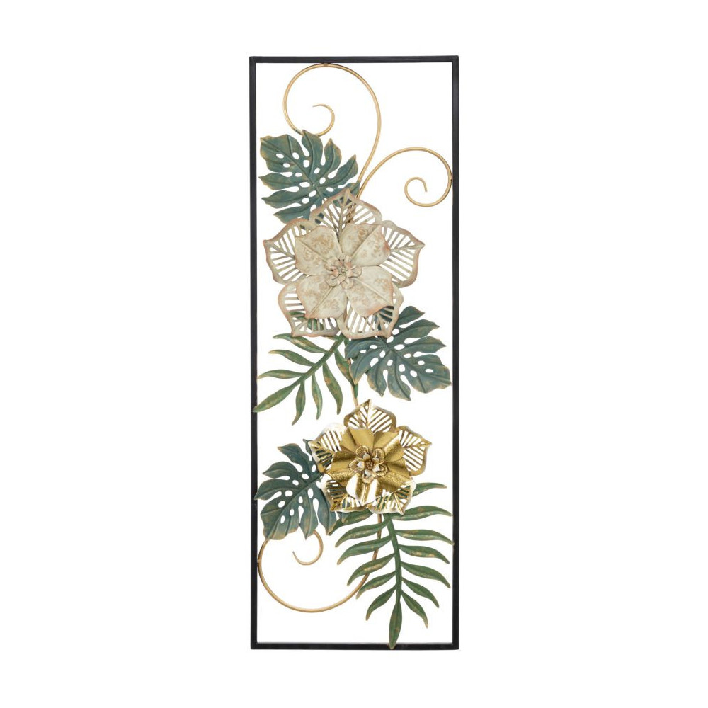Pannello rettangolare con foglie in metallo. I pannelli 3D sono il nuovo trend per decorare le pareti. Il metallo laccato si declina in forme geometriche, vegetali o animali che conferiscono un'allure glamour e sorpendente ad ogni ambiente
