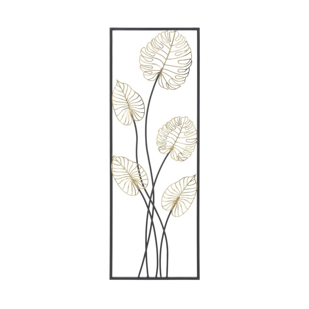 Pannello rettangolare con foglie in metallo. I pannelli 3D sono il nuovo trend per decorare le pareti. Il metallo laccato si declina in forme geometriche, vegetali o animali che conferiscono un'allure glamour e sorpendente ad ogni ambiente