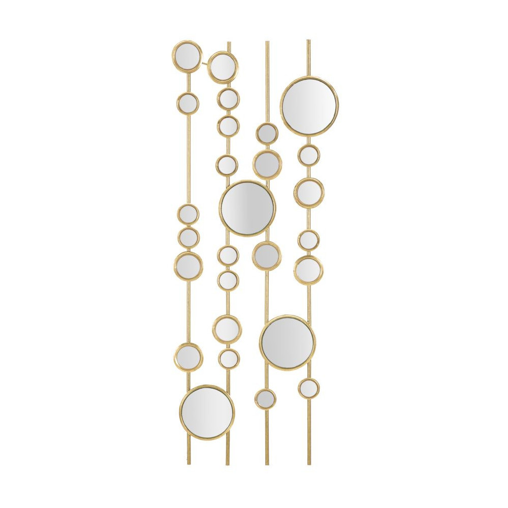 Pannello decorativo 3D dorato dal design geometrico composto da un insieme di specchietti rotondi di varie dimensioni.