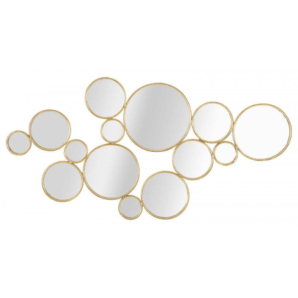 Composizione di specchi da parete dorati dal design semplice e lineare. L'alternanza di dimensioni ricorda le bolle di sapone.