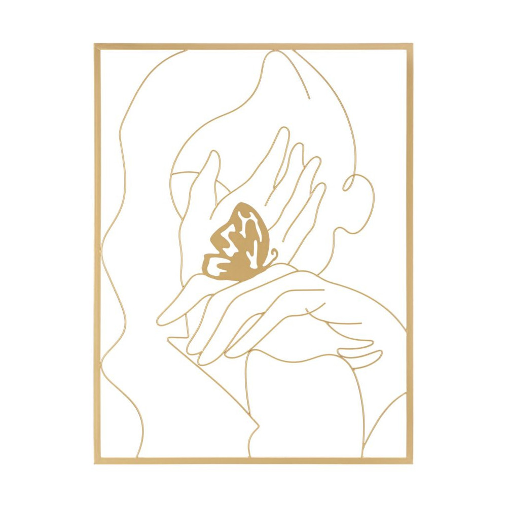Pannello decorativo 3D da parete dai tratti semplici ed essenziali che vanno a comporre un volto con due mani e una farfalla, il tutto racchiuso in una cornice rettangolare.