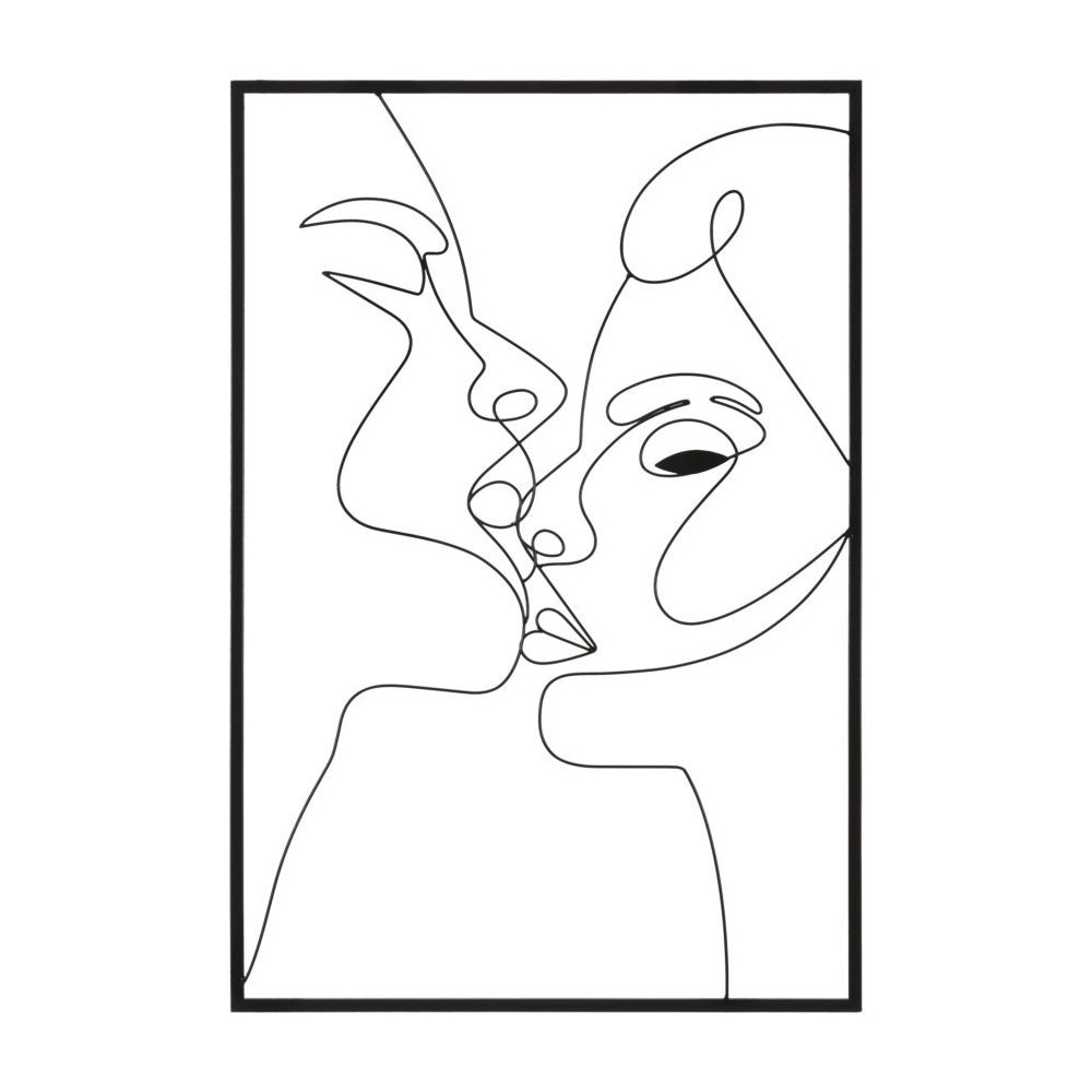 Pannello decorativo 3D da parete dai tratti semplici ed essenziali che vanno a comporre due volti che si baciano, il tutto racchiuso in una cornice rettangolare.