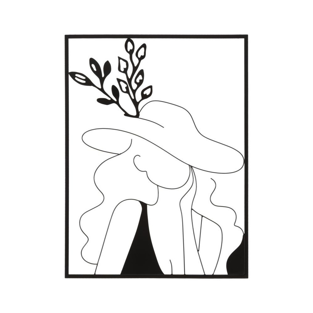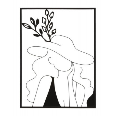 Pannello decorativo 3D da parete dai tratti semplici ed essenziali che vanno a comporre una figura femminile con un elegante cappello, il tutto racchiuso in una cornice rettangolare.