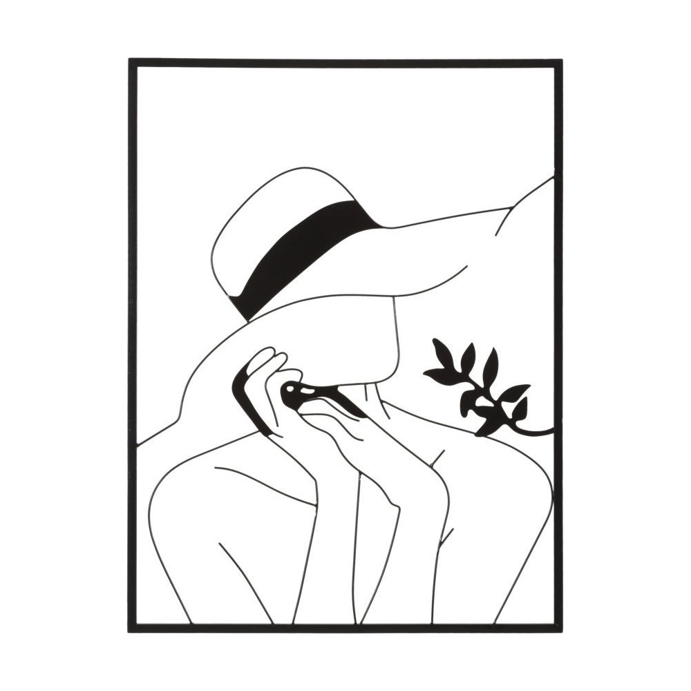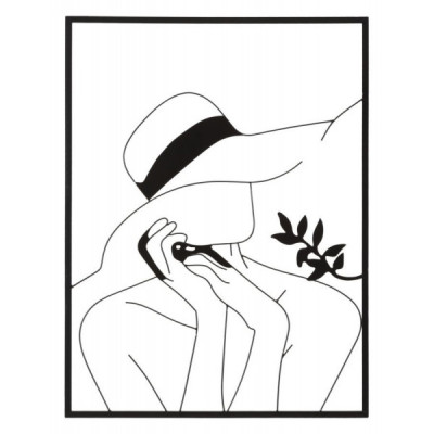 Pannello decorativo 3D da parete dai tratti semplici ed essenziali che vanno a comporre una figura femminile con un elegante cappello, il tutto racchiuso in una cornice rettangolare.
