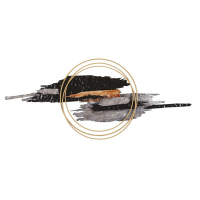 Pannello decorativo 3D da parete in metallo dal decoro astratto in un doppia cornice in metallo dorato.