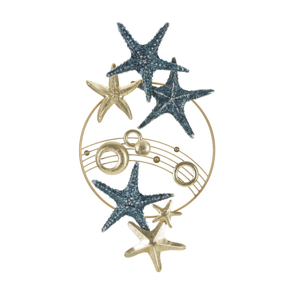 Pannello decorativo 3D da parete in metallo raffigurante delle stelle marine in un elegante cornice dorata.