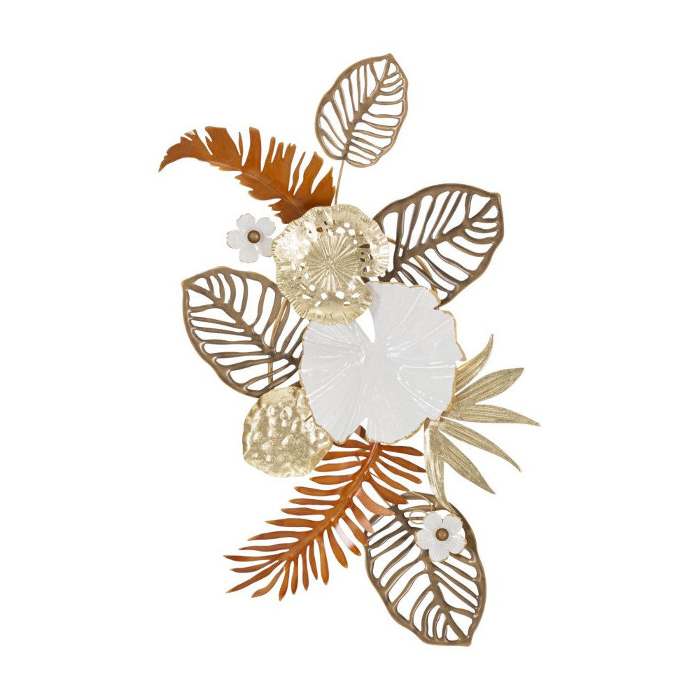 Pannello decorativo 3D da parete in metallo raffigurante un insieme di foglie in vari colori.