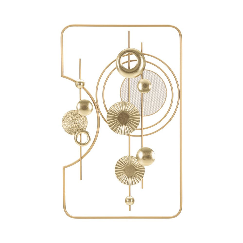 Pannello decorativo 3D da parete in metallo dorato composto da figure geometriche astratte.