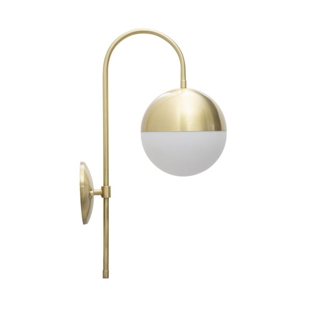 Applique in metallo dorato con sfera in vetro bianco. Le linee essenziali si sposano con l'eleganza dell'oro per creare un design unico.