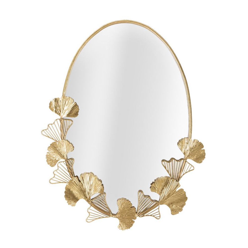 Specchio da parete in metallo dalle linee essenziali, morbide e sinuose con eleganti decori a forma di foglia. Gli specchi dorati sono un must have dello stile retro glam e sono un ottimo strumento per rendere gli spazi più ampi visivamente. Lo specchio crea un insieme originale ed equilibrato ed è perfetto collocato all'ingesso o sopra una console.