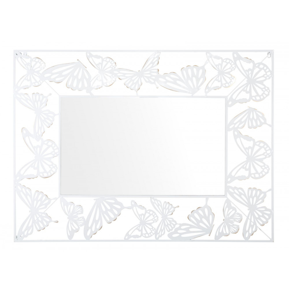 Specchio rettangolare da parete in metallo bianco. La particolare cornice realizzata con farfalle in volo intagliate dona un tocco di eleganza e leggerezza ad ogni ambiente.