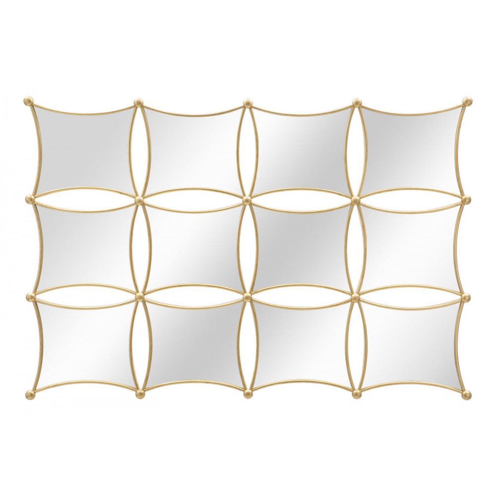 Composizione di specchi da parete dal design geometrico e ipnotico impreziosita da eleganti cornici in metallo dorato. Il pannello è composto da 12 specchi.