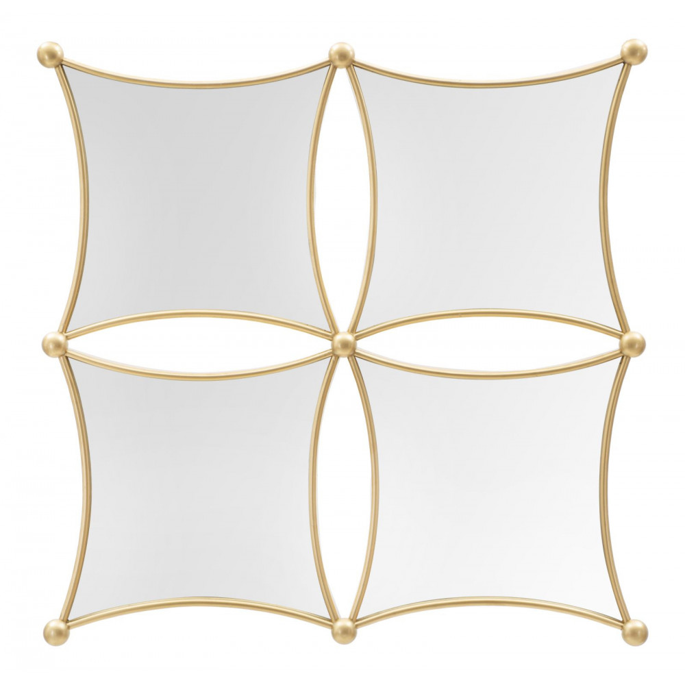 Composizione di specchi da parete dal design geometrico e ipnotico impreziosita da eleganti cornici in metallo dorato. Il pannello è composto da 4 specchi.