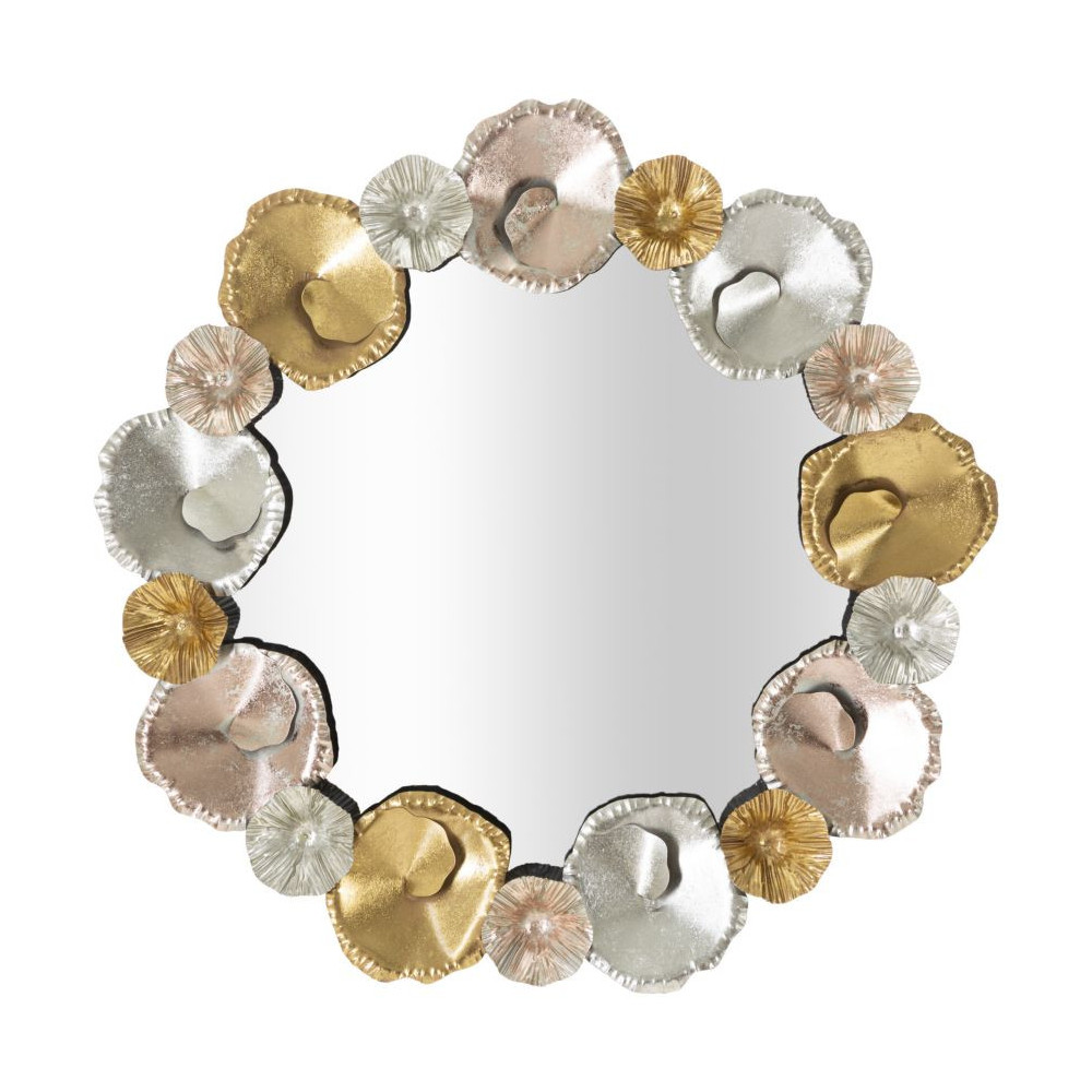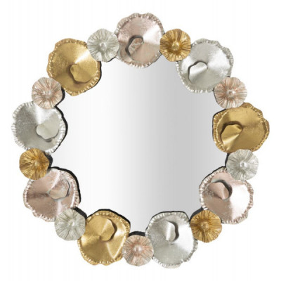 Specchio rotondo da parete con la cornice composta da decorazioni multicolore che ricordano dei fiori