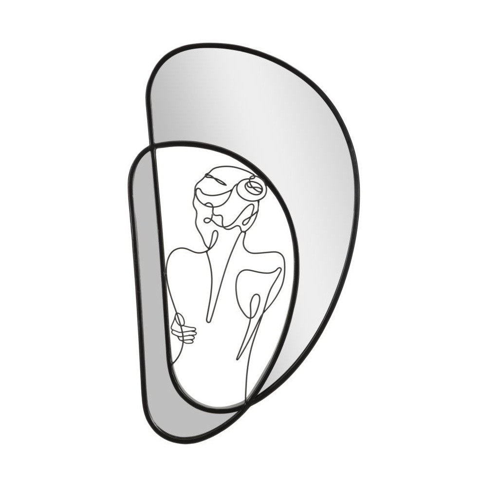 Specchio da parete dalla forma morbida e arrotondata impreziosita da un'elegante decorazione centrale raffigurante una donna di schiena.