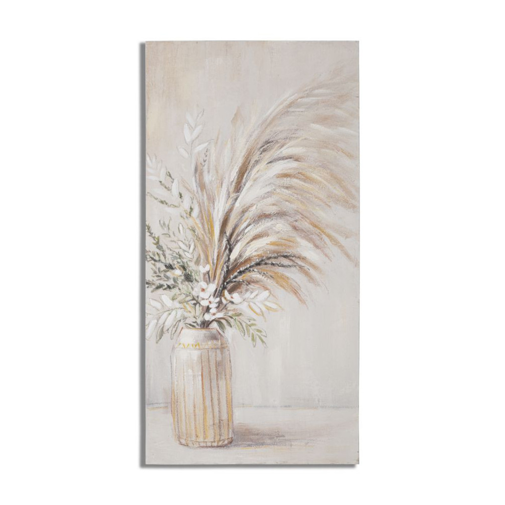Dipinto su tela completo di telaio in legno raffigurante un vaso di fiori dalle tonalità calde e soffuse.