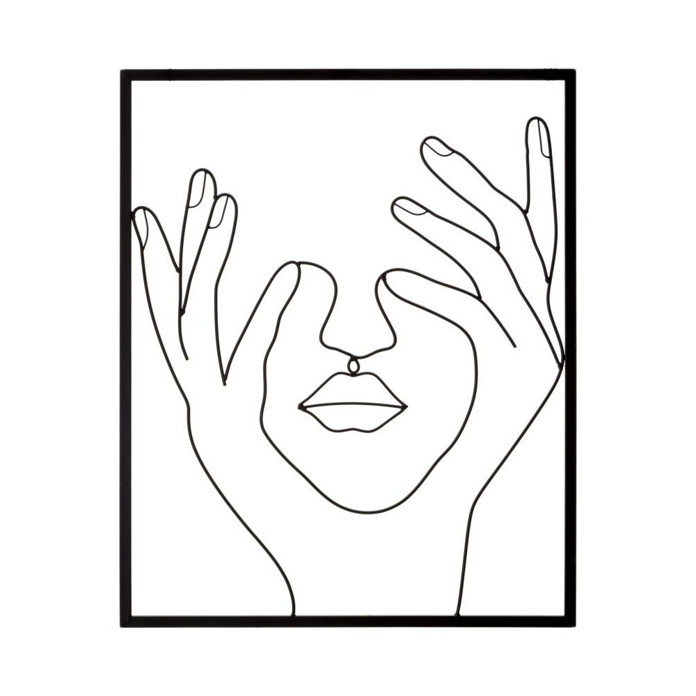 Pannello decorativo 3D da parete raffigurante due mani e un volto dalle linee semplici racchiuse in una cornice