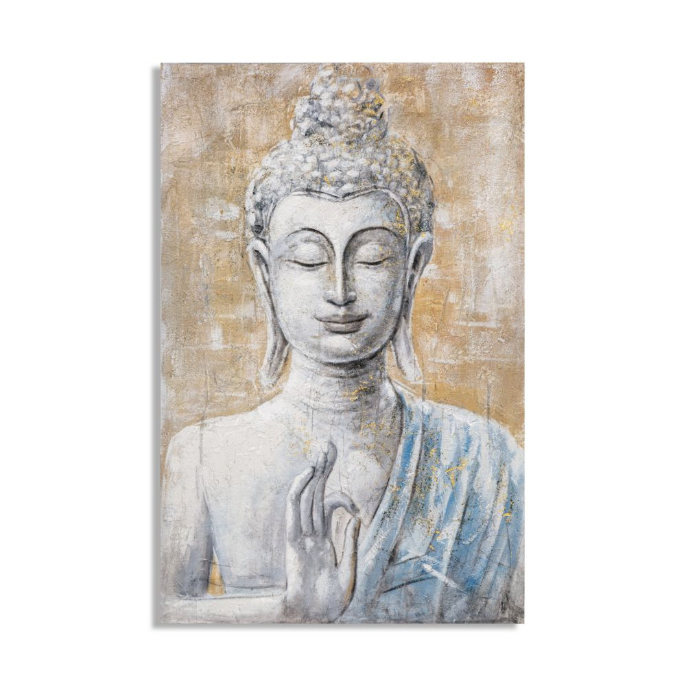 Dipinto su tela completo di telaio in legno raffigurante il volto di Buddha.